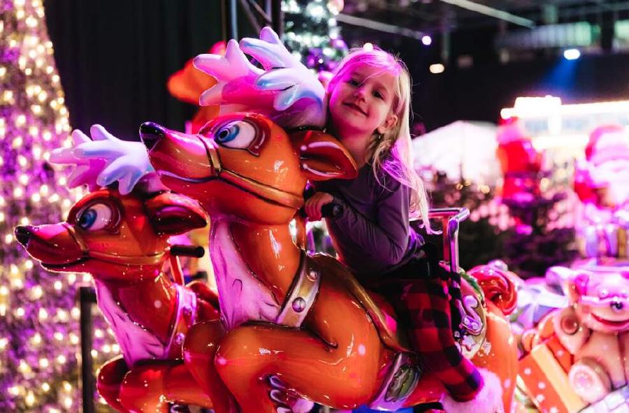 Choo choo… whoooosh! Hop on, find a seat, and let the little train take you past snow and sparkling lights. Sit back, watch, and enjoy. Maybe one more round?