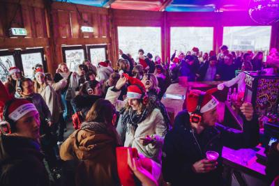 Dans in onze Silent Après-ski op muziek die alleen jullie horen. In deze speciale schirmbar kun je ongegeneerd meezingen met de lekkerste hits en foute Duitse schlagers.