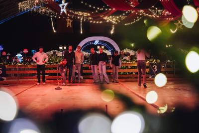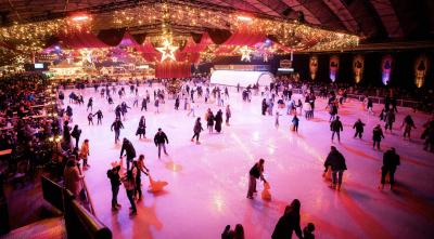 Glij over onze buiten schaatsbaan omringd door sprankelende lichtjes en het feestelijke Winterplein.